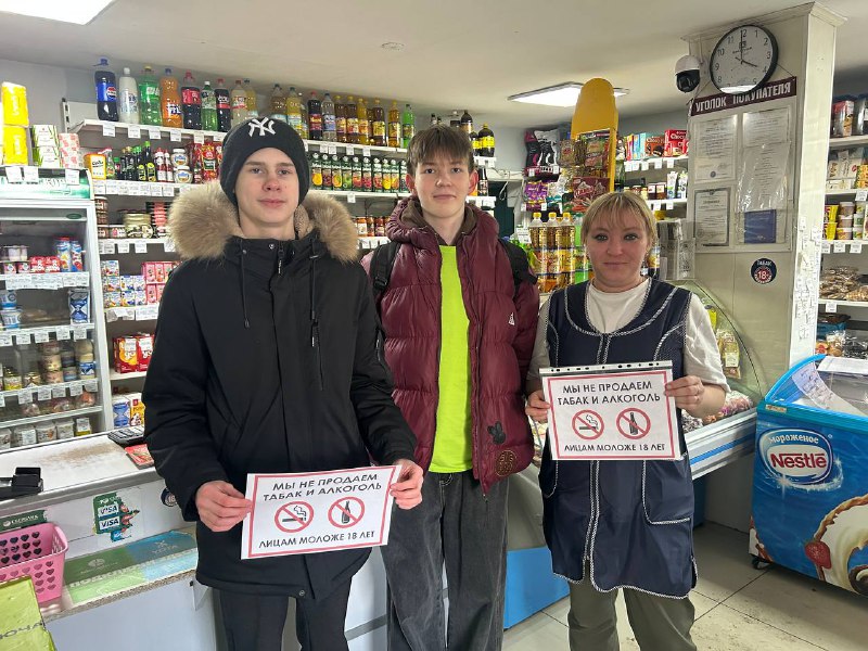 В рамках Всероссийского дня правовой помощи детям, 21 ноября 2025 года добровольцы волонтерского движения «Наш выбор» провели социальную акцию «Наши аргументы против», направленную на предотвращение продажи алкогольной и табачной продукции несовершеннолетним.