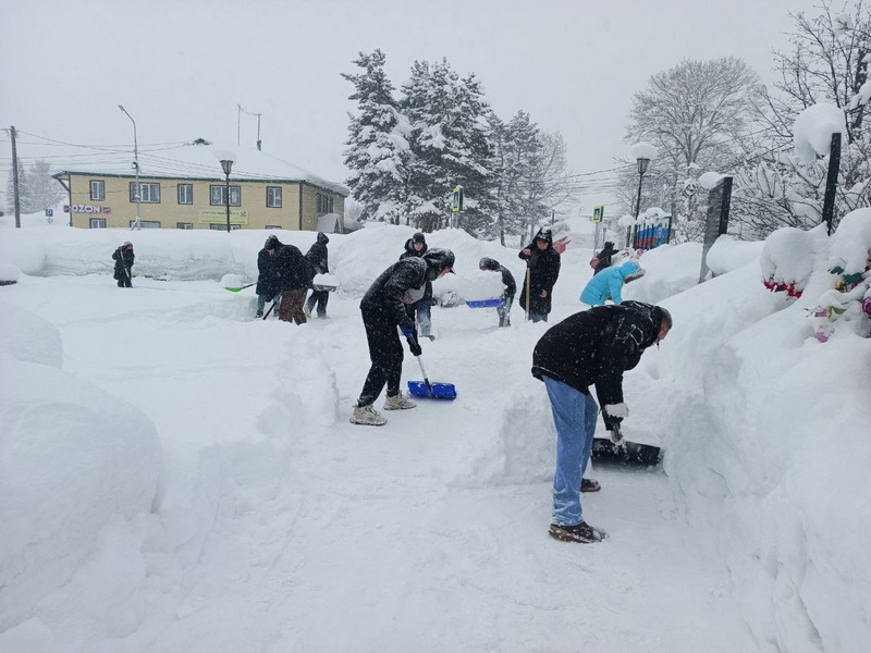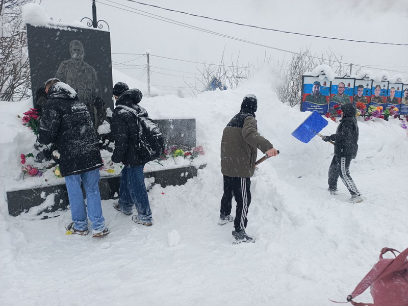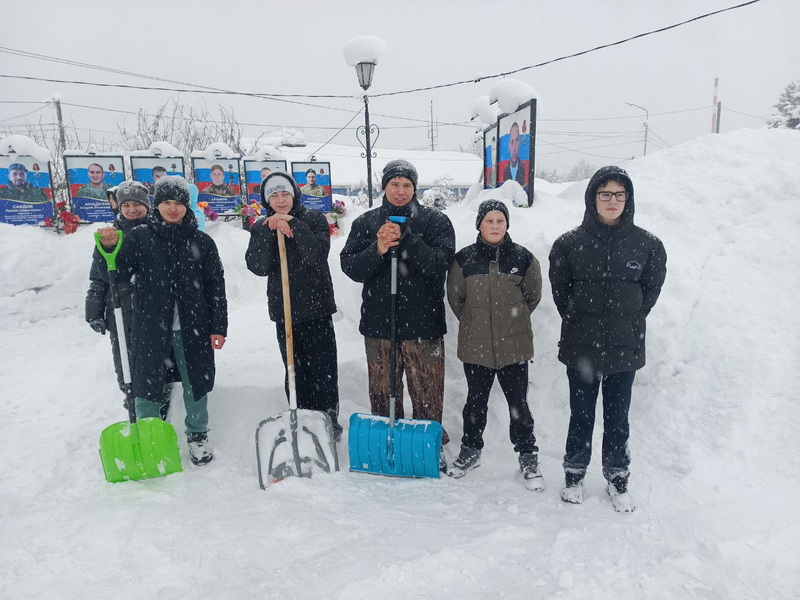 Добровольцы волонтерского движения «Наш выбор» Камчатского центра для несовершеннолетних совместно с представителями отряда «Хранители истории» Российского движения детей и молодежи «Движение первых» занялись благоустройством памятных мест села, убрали мусор, почистили снег на территории Аллеи Славы.