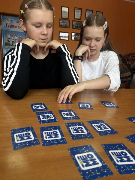 Педагог-психолог Марина Владимировна Иванова провел для ребят серию игровых упражнений, направленных на развитие памяти, внимания и мышления. Особый отклик у участников вызвала всеми любимая игра «Мемори» - простая, знакомая с детства, но от этого не менее эффективная тренировка зрительной памяти.